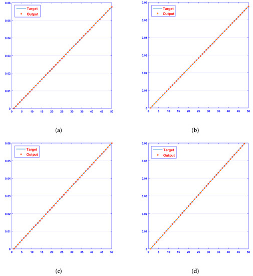 Meansquare error of NN-LMT prediction of dimensionless ion concentration. (a) At c = 0.1; (b) At c = 0.2; (c) At c = 0.3; (d) At c = 0.4.