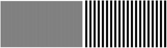 Stripe patterns in different colors. The difference between two adjacent stripes on the left is 1, while the difference on the right is 255.