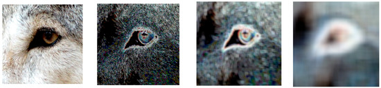 In this paper, bicubic interpolation [26], EDSR [27], WDSR [28], SAN [29], SRGAN [6], and SPSR [7] are used as methods for SR to get high-resolution images from low-resolution images, and DNCNN [30], FFDNet [31], IRCNN [32], IPT [33], and LIGN [34] as denoising methods to recover clean images from noisy images. In SR methods, bicubic is a traditional up-sampling method. EDSR optimizes the SRResnet [3] network structure by removing the BN layer, reducing both computation time and optimizing recovery results. WDSR is based on EDSR, which expands the number of feature maps before the activation function in the block, allowing the network to better convey information. SAN proposes a two-stage attention network, leading to stronger feature representation and feature relationship learning. SRGAN uses both perceptual loss and adversarial loss, making the perceptual quality of its restored images better than the previously mentioned methods. SPSR introduces gradient loss, which enhances the detailed texture of the restored image. Among the denoising methods, DNCNN is the first deep learning-based image-denoising algorithm. FFDNet proposes a noise level map as input and noise estimation and noise images together as input to improve the generalization of noise. IRCNN trains a fast and efficient CNN denoising network and integrates it into a model-based optimization approach. IPT is based on the transformer’s network model and differs from other image restoration methods in that it takes different head and tail sections for different restoration tasks, improving its accuracy for the corresponding image restoration task. LIGN proposes a layered input method that adds image gradient depth information to the network, enhancing edge and detailed texture regions, so it is more in line with people’s perceived quality compared with the previous methods.