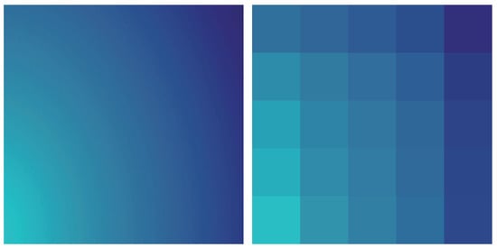 In the LTE (local thermodynamic equilibrium) approximation, a continuous gradient of, say, temperature in a system (left frame) is replaced by a number of small subsystems, each with its uniform temperature and pressure. Thus, the full system with its continuous irreversibility is represented by a collection of equilibrium systems with the irreversibility located at their boundaries, i.e., endoreversible systems (right frame) [8,9].