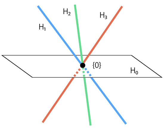 Here, we present an example for Theorem 1 for the case to illustrate the relationship of the involved subspaces. We define the following :