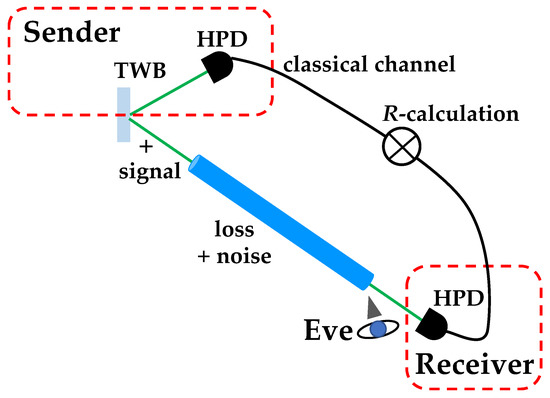- Allevi, A.; Bondani, M. Novel scheme for secure data transmission based on mesoscopic twin beams and photon-number-resolving detectors. Sci. Rep. 2022, 12, 15621. [Google Scholar] [CrossRef]