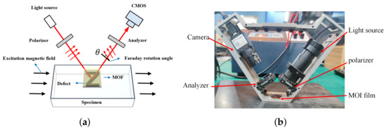 1). The rotated light reflected by a mirror under the MO film would be filtered by the polarizer and captured by the CMOS. The acquired gray image depicts the normal components of the MFL field.