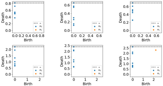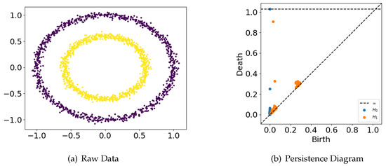 Here, we use VR complex. For given and metric d in P, the VR complex is the topological space containing different dimensional simplex whose maximum distance among vertices is less than or equal to .