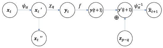 Although the functions that will be optimized have been parameterized by neural networks, Equation (6) is still hard to be optimized directly because the objective function and the constraint condition must be combined together to be considered and q as a hyper-parameter can affect the structure of neural networks. Thus, in this paper, we propose a two-stage optimization method. In the first stage, we fix the hyper-parameter q and optimize the difference between the predicted micro-state and the observed data , that is Equation (4), to let the coarse-graining strategy and macro-dynamics to be effective. Then, we search for all possible q values to find the optimal one such that can be maximized.