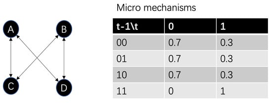 under the constraint Equations (4) and (5), where is a measure of effective information, it could be , , or dimension averaged EI which is mainly used in this paper and is denoted as (will mention in Section 3.3.3). is an effective coarse-graining strategy, and is an effective macro-dynamic.
