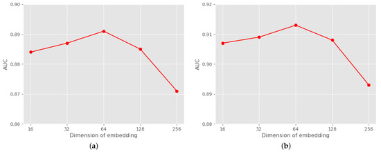 The dimension of final node embedding Z. (a) Bitcoin-Alpha. (b) Bitcoin-OTC.