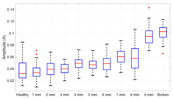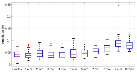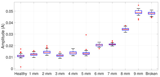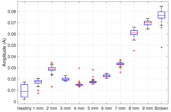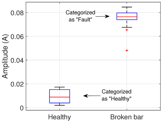 Boxplot of the fault amplitudes’ distribution data in a 75% loaded IM.