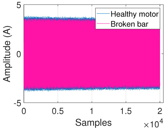These signals are associated with different damage levels in the rotor bar. Typically, the analysis is focused on one broken bar, half broken bar, and so on; the healthy motor signal also needs to be acquired. These signals do not require any pre-processing and are analyzed according to the sampling frequency at which they were acquired.