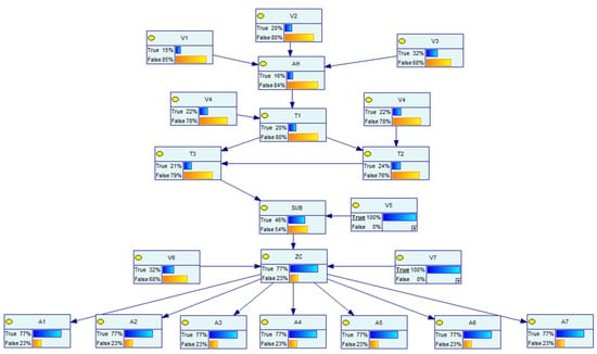 - The vulnerability has been exploited by the attacker, and its dynamic probability is shown in Figure 10, set as scene 2;