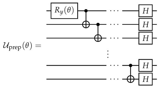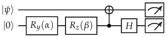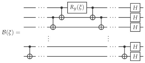 where is a unitary whose circuit is shown in Figure 4, and the angle is obtained by maximizing resulting fidelity value