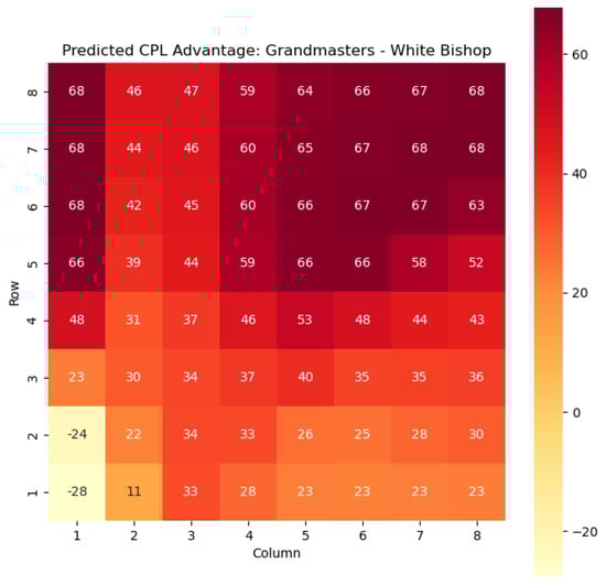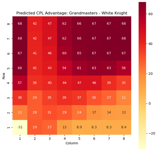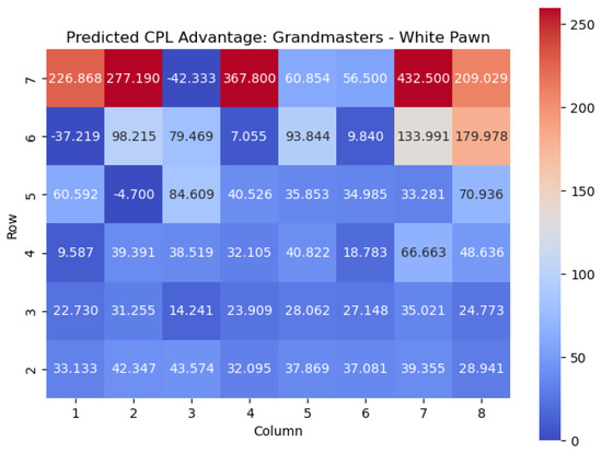 Predicted CPL advantage offered by the White pawn in grandmaster games.