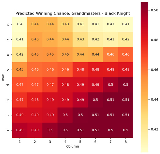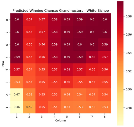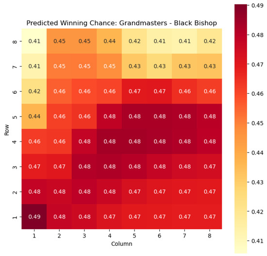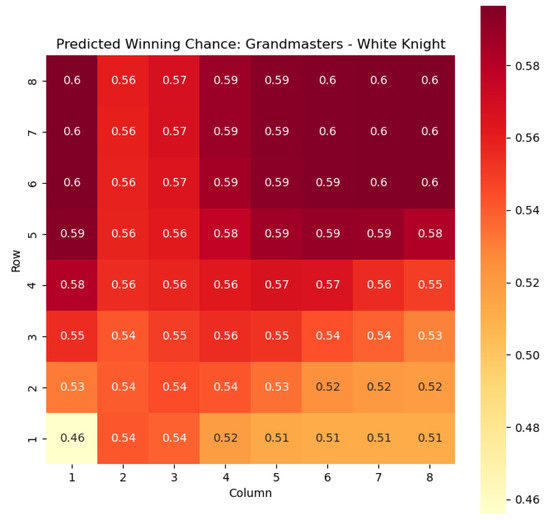 Our methodology expanded upon previous work by considering a comprehensive state representation that encompassed color, piece type, and square information. This allowed for a more nuanced analysis of the game dynamics and a deeper understanding of the factors influencing the outcome. We also showcased the applications of our model, focusing on specific subsets of states, such as the knight and bishop pieces, and visualizing the predicted probabilities of winning and centipawn evaluations through heat maps.