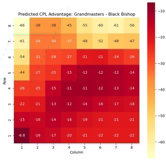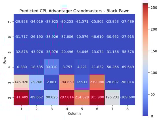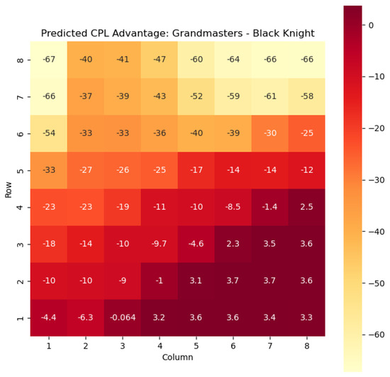 Predicted CPL advantage offered by the Black pawn in grandmaster games.