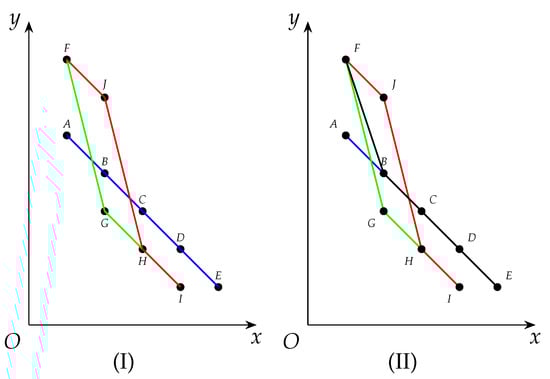 To make our descriptions more intuitive, we show C and separately below and moreover, in C a heavier vertex is shown in a darker color. If we left-shift , then we will find that there is a one-to-one map namely , s.t.