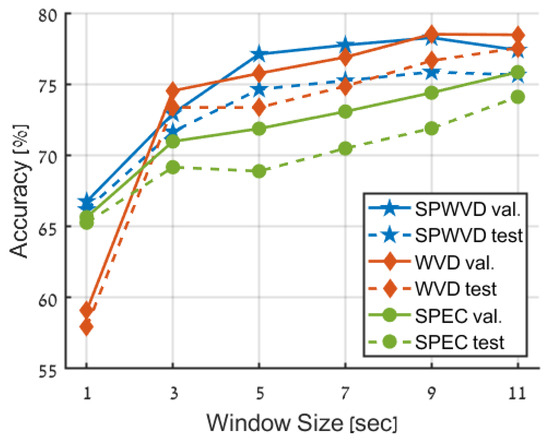 Table 3. Accuracy results (%) for different TFRs and segmentation lengths. In each cell, the upper result refers to the validation set performance, while the lower result refers to the test set performance. The highest results are highlighted within each column, demonstrating the superiority of Wigner-based representations over spectrogram. Additionally, the impact of increased window size is observable.