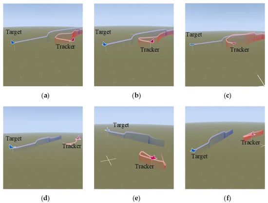 To select the best-performing agent, we create an evaluation metric to compare the training results of various methods. The qualitative and quantitative results demonstrate the usefulness of our proposed model. The tracking performance of the tracker is evaluated when the target is moving at 0–180° relative north in an air combat environment. For comparison, we trained 2400 episodes for each angle type, for a total of 11.5 × 106 simulation steps, and tested 500 samples for the corresponding angle types.