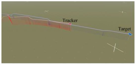 where is a parameter and is a positive parameter, represents the real position and velocity of the target, and fstate represents the current position and velocity of the tracker. SOT represents the status of tracking between and . The DQN [] algorithm is applied to the learning of each agent in the simulation. It learns an optimal control policy .