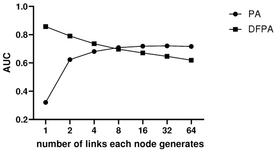 According to the prediction results of PA and DFPA in these scale-free networks, DFPA performs better when the network is sparse. As the degree of each node increases, the performance of PA gradually becomes better, while that of DFPA shows a downward trend. However, DFPA has a higher upper limit than PA in prediction.