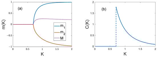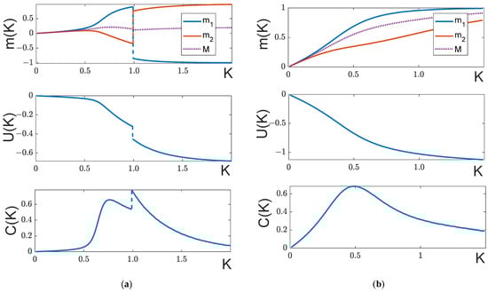 Typical curves for : (a) partial magnetizations and full magnetization ; (b) heat capacity . The curves are drawn for .