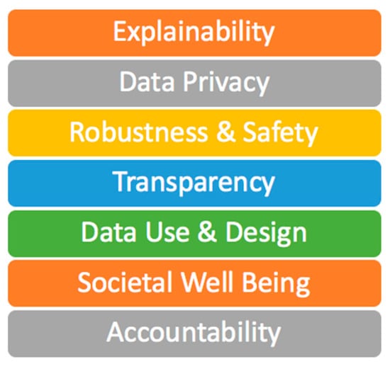 - Floridi, L.; Cowls, J.; Beltrametti, M.; Chatila, R.; Chazerand, P.; Dignum, V.; Luetge, C.; Madelin, R.; Pagallo, U.; Rossi, F.; et al. AI4People—An ethical framework for a good AI society: Opportunities, risks, principles, and recommendations. Minds Mach. 2018, 28, 689–707. [Google Scholar] [CrossRef]