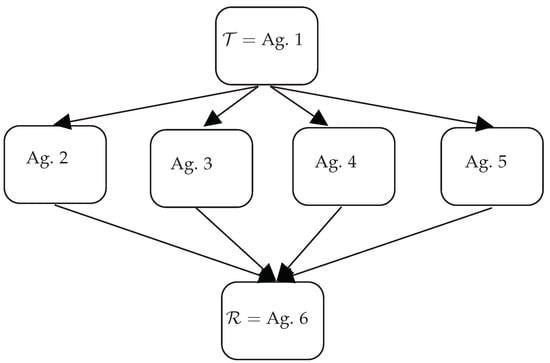 , to be equal for all agents except for Agents 3 and 4, which are responsible for changing the nature of the transmitted information. We choose