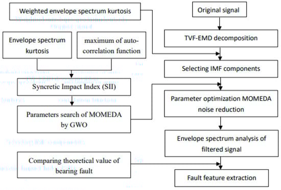 The flow of the bearing early fault diagnosis method based on TVFEMD and parameter adaptive MOMEDA is shown in Figure 1.