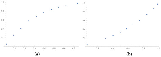 In the literature, one can encounter many definitions of ICIs [6]. Some of them are connected with a certain prioritization method, while the others are based on the consistency definition. All indices are designed to measure the deviation of the PCM from a consistent matrix. Due to this fact, it seems to be obvious that the values of various indices may be correlated. However, this correlation is not the same for various pairs of indices. Some authors have algebraically shown the relationship between Saaty’s Index and the Geometric Index [7], and some other pairs of indices [8]. On the other hand, the numerical study on the relationship between some indices has been conducted [9,10] and strong dependencies between many ICIs have been shown. In my research, I would like to present the values of the correlation coefficient between selected pairs of indices, mainly involving indices based on the triads idea. However, my results have also been compared with results for traditional indices. The outcomes are obtained in Monte Carlo simulations, which are similar to investigations previously conducted by some authors [9,10,11,12,13]. Some plots that show the relationship between selected pairs of indices are also presented. The method of presenting results is somehow different than this in [9].