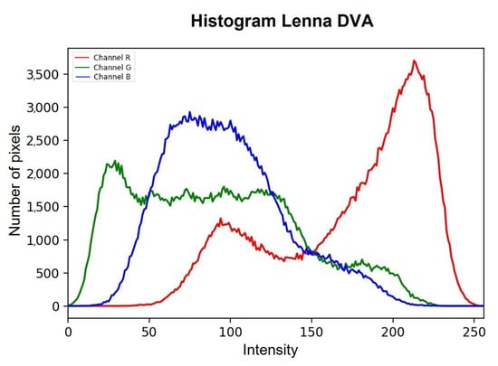 The DVA process is described in detail in Algorithm 1. Once the processing through the DVA is finished, we analyze the histogram of the resulting image, which is shown in Figure 5, perceiving how the DVA restores the intensities of the pixels contained in each of the channels to a certain extent. In this sense, the DVA is capable of restoring the image; however, it is not an optimal processing due to the nature of the noise since the same noise causes significant loss of information in the images, which the DVA tries to bring closer to the images. The intensities of the corrupted pixels are an ideal panorama.