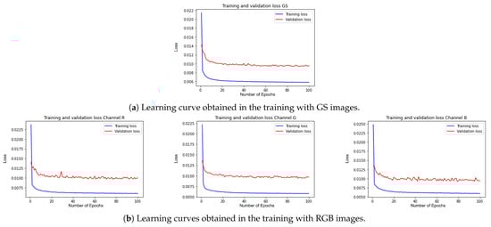 Table 3 exemplifies the PSNR results obtained by each neural network used in the validation GS images, and Table 4 exemplifies the PSNR results obtained in the same way but for RGB images.