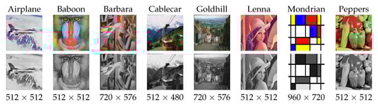 The evaluation of the DA was carried out through the use of various images both in RGB and in GS of different dimensions. These images are unknown to the network in order to verify the proper functioning of the same. The evaluation images are shown in Figure 7. Each evaluation image was corrupted with Gaussian noise with densities from 0 to 0.50 in intervals of 0.01.