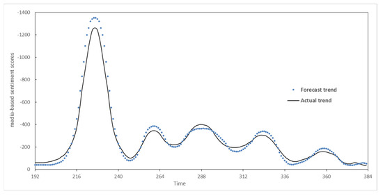 After we determined the classification of the POR situation of “the tax evasion event”, the POR prediction will be exacted by integrating the real-time POR data into the fractal interpolation-based prediction model. The iterative calculation is carried out through the IFS to predict the subsequent POR propagation situation of “the tax evasion event”. The comparison of some predicted results and actual measured result is shown in Figure 3.