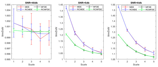 Apart from that, the CG procedure causes the signal length to be shorter as the scale factor increases. As a result, the higher the scale factor, the lower the accuracy of entropy [39]. To address this problem, Wu et al. [40] proposed composite MSE (CMSE) to improve the accuracy of MSE. Afterwards, proposing refined composite MSE (RCMSE), Wu et al. [41] decreased the probability of the undefined values of SE in the multiscale algorithm in addition to improving the accuracy of MSE. Multiscale algorithm refinement is also conducted in other studies, including refined composite multiscale fuzzy entropy (RCMFE) by Azami et al. [42], refined composite multiscale permutation entropy (RCMPE) by Humeau-Heurtier et al. [43], and refined composite multiscale dispersion entropy (RCMDE) by Azami et al. [33].