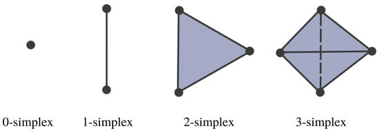 The primary tools in TDA are Morse and Vietoris–Rips filtrations, which have been extensively used in various applications. For instance, Morse filtrations have been used to study patterns in imaging data, such as in [28,29], or the geometry of random fields in general, as in [30]. However, Vietoris–Rips filtrations (through persistence homology) have been extensively used to study many types of point cloud datasets. This includes time series data and their transformations using various embedding techniques. To better understand persistence homology, a few concepts, such as simplicial complexes and their filtrations, will be introduced.