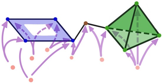 Simplicial complexes can be as simple as a combination of singleton sets (disconnected nodes), or more complicated, such as a combination of pairs of connected nodes (edges), triplets of triangles (faces), quadruplets of tetrahedrons, any higher-dimensional simplex, as shown in Figure 7), or a combination of different k-simplices in general, as shown in Figure 8. Though the notion of a simplicial complex may seem almost identical to that of networks, there is a major difference. On the one hand, networks and graphs disregard surfaces, volumes, etc., and can be thought of as flexible structures, whereas simplicial complexes take a much richer approach by keeping track of many levels of complexity represented by various k-simplices.