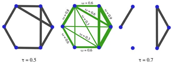 Due to the difficulty of analyzing and visualizing weighted networks, practitioners apply some thresholding techniques to create a binary network (from the weighted brain network) where the edge exists when the continuous connectivity value exceeds the pre-specified threshold; see [9,50,51,52]. This thresholding is often arbitrarily selected. A major problem associated with this common approach is the lack of principled criteria for choosing the appropriate threshold. Moreover, the binary network derived from a single threshold might not fully characterize the dependence structure. Obviously, the thresholding approach induces a bias and a significant loss of information, leading to a simplified network.