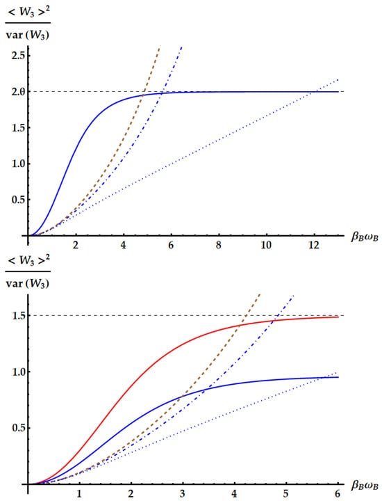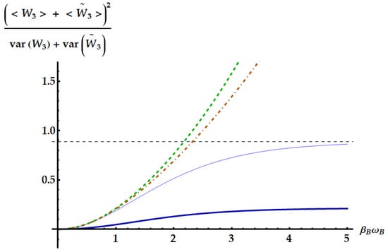 A specific example is plotted in Figure 12. Equation (33) is consistent with the general result given in Ref. [] for the work distribution in swap engines based on two qudits.