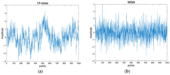 Examples of synthetic signals: (a) 1/f noise and (b) WGN.