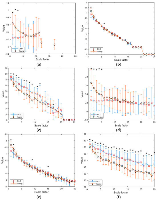 3.2.2. Comparison of Entropy Measures for Healthy Young and Elderly Groups