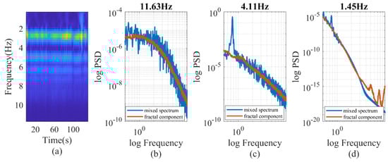(a) wavelet decomposition of PPG signal. (b–d) IRASA of PPG signals at different wavelet frequencies.