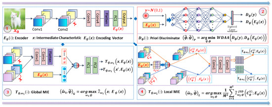 The prior discriminant network in the WDIM method is trained by optimizing the objective function Equation (9), thus providing an effective loss value. Thus, the prior discriminator cannot distinguish whether the input comes from the coding vector or from the y of the prior distribution, thus achieving that the output vector of the encoder obeys the prior distribution as much as possible, and this more regular coding vector facilitates feature decoupling for learning of downstream tasks. Finally, the complete objective function of our WDIM method is given as follows: