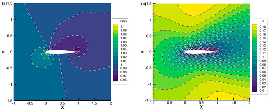 Equation (33) can be easily resolved through the LU-SGS method [40]. At the beginning of the inner iteration, the initial values of the conservative variables and fluxes are set as and . At the conclusion of the inner iteration, we can set , where signifies the iteration number of the inner iteration and it is chosen as 50 in this work. In addition, for simplicity, the time step size in the pseudo-time level is chosen as .