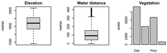 - Waterdist, a continuous variable for the Euclidean distance from the nearest water body expressed in metres.