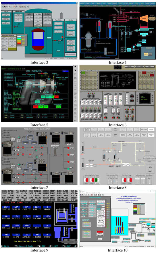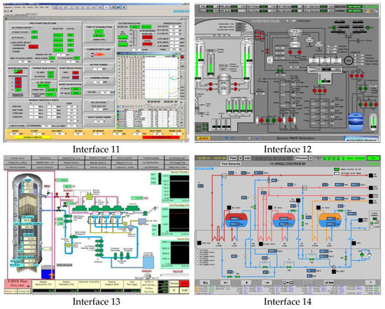 To ascertain the efficacy of the proposed evaluation method, a total of 14 interfaces from different nuclear power plants, each boasting a resolution of 1024 × 768 pixels, were meticulously chosen. These interfaces are showcased in Figure 4, encapsulating a broad spectrum of distinct categories. This diverse selection ensures a comprehensive assessment, allowing for a robust validation of the method’s applicability across various interface categories and different nuclear power plants.