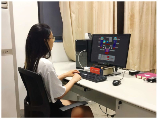 The interface evaluation was further conducted from an alternative perspective using the conventional experimental method. In this experiment, a within-participant design was adopted, where 30 participants were required to make decisions under the 14 nuclear power plant interfaces. A depiction of the experimental site is provided in Figure 5.