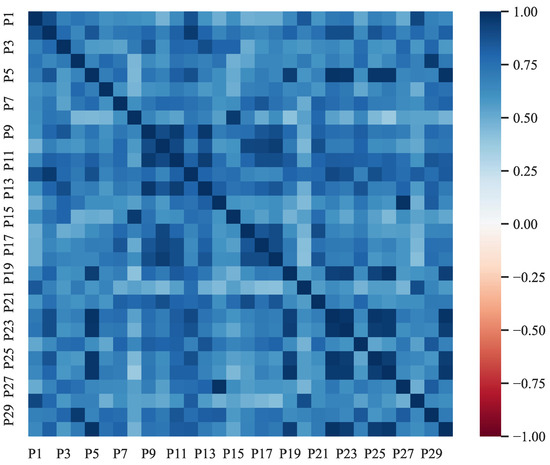 Figure 7 presents the correlation heatmap for various pairs of participants based on decision-making efficiency. Based on the data, it is evident that except for the pair consisting of Participant 8 and Participant 26, whose correlation coefficient was below 0.4, all other pairs had correlation coefficients above 0.4, indicating significant correlation. This result is encouraging, showing that different participants tend to have consistent decision efficiency when interacting with the same interface. It reflects the rationality of the sample selection, the reliability of the experimental design, and the validity of the experimental data.
