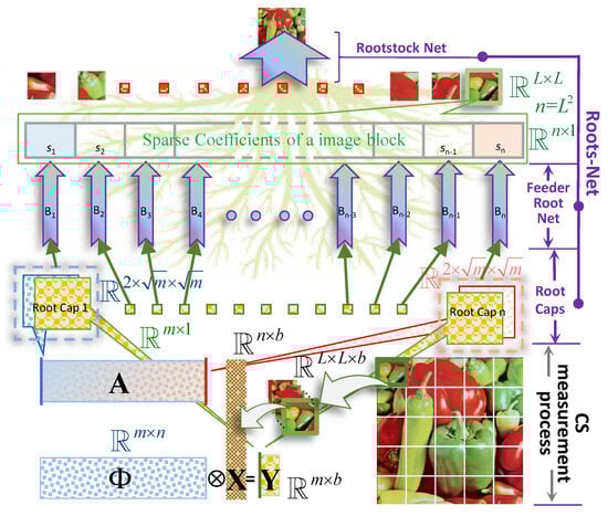 So, this paper proposes RootsNet, which consists a Feeder-root module to predict the sparse coefficients, and a Rootstock net module for residual processing and de-blocking. The measurement matrix, sparse basis, and the measurement data are transformed to root caps. The whole structure is similar to a root structure and named after it. The major contributions are: