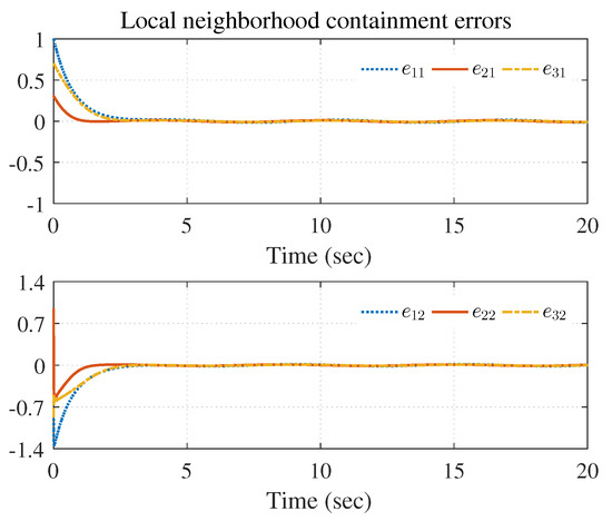 Similar to Example Section 4.1, the local neighborhood containment error vector was given as .