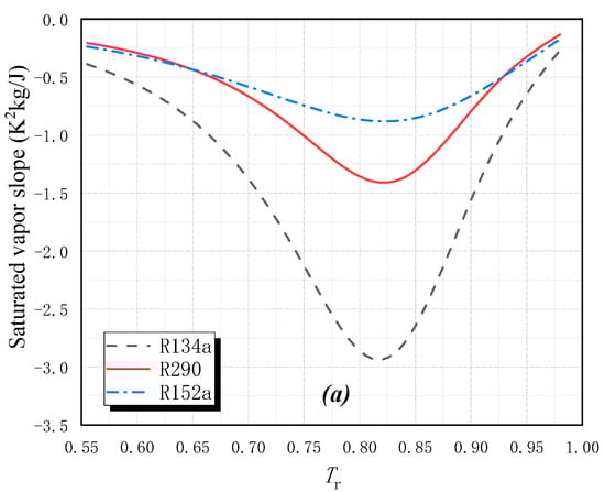 In this research, the slope of the working fluid in a saturated state is obtained by the following method. According to the basic thermodynamic equations, there is
