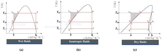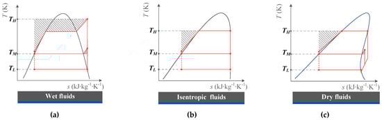 T-s Diagram of ERC with different fluids: (a) Wet fluids; (b) Isentropic fluids; (c) Dry fluids.